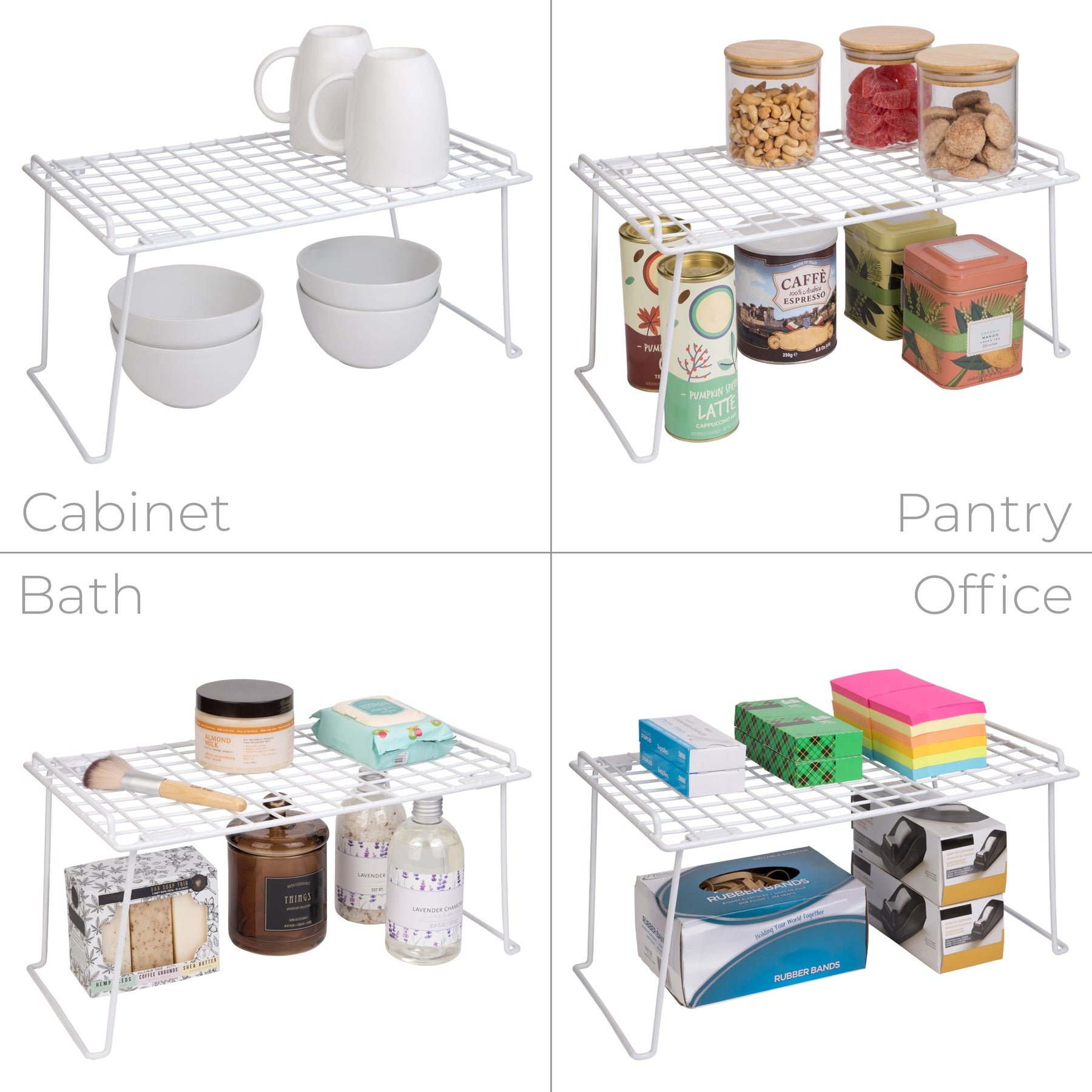 STACKING SHELF RACK - Ideal for kitchen cabinets, pantries, craft closets, bathroom cabinets