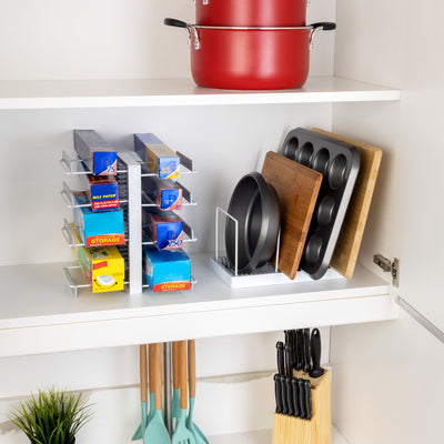 For storing up to eight wraps or 4 bakeware pans, this organizer will help tidy your kitchen space.